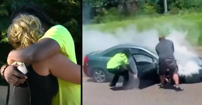 WATCH: Mom Meets Guardian Angel from Burning Car Rescue